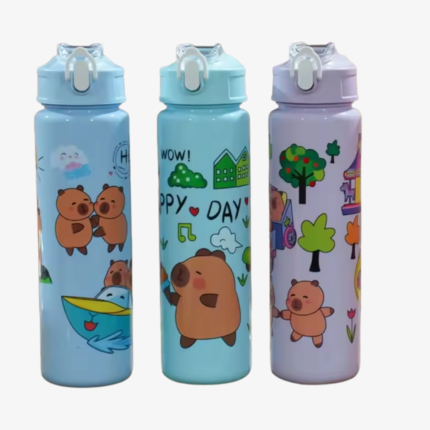 750ML Capybara Water Bottle | Cute Leakproof Bottle with Straw & Carry Strap | BPA Free Sports & Outdoor Drink Bottle