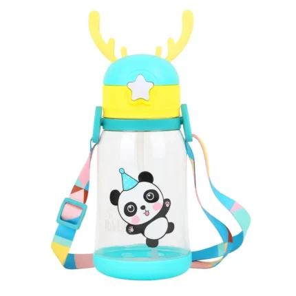 Kids Sipper Water Bottle 600ml with Straw & Shoulder Strap | Leakproof Portable Plastic Bottle for Boys & Girls